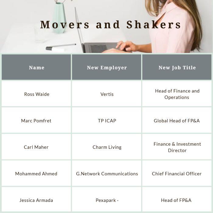 From planning and analysis through to leadership and investment-focused positions, these moves reflect the broad scope of responsibilities within modern finance teams.